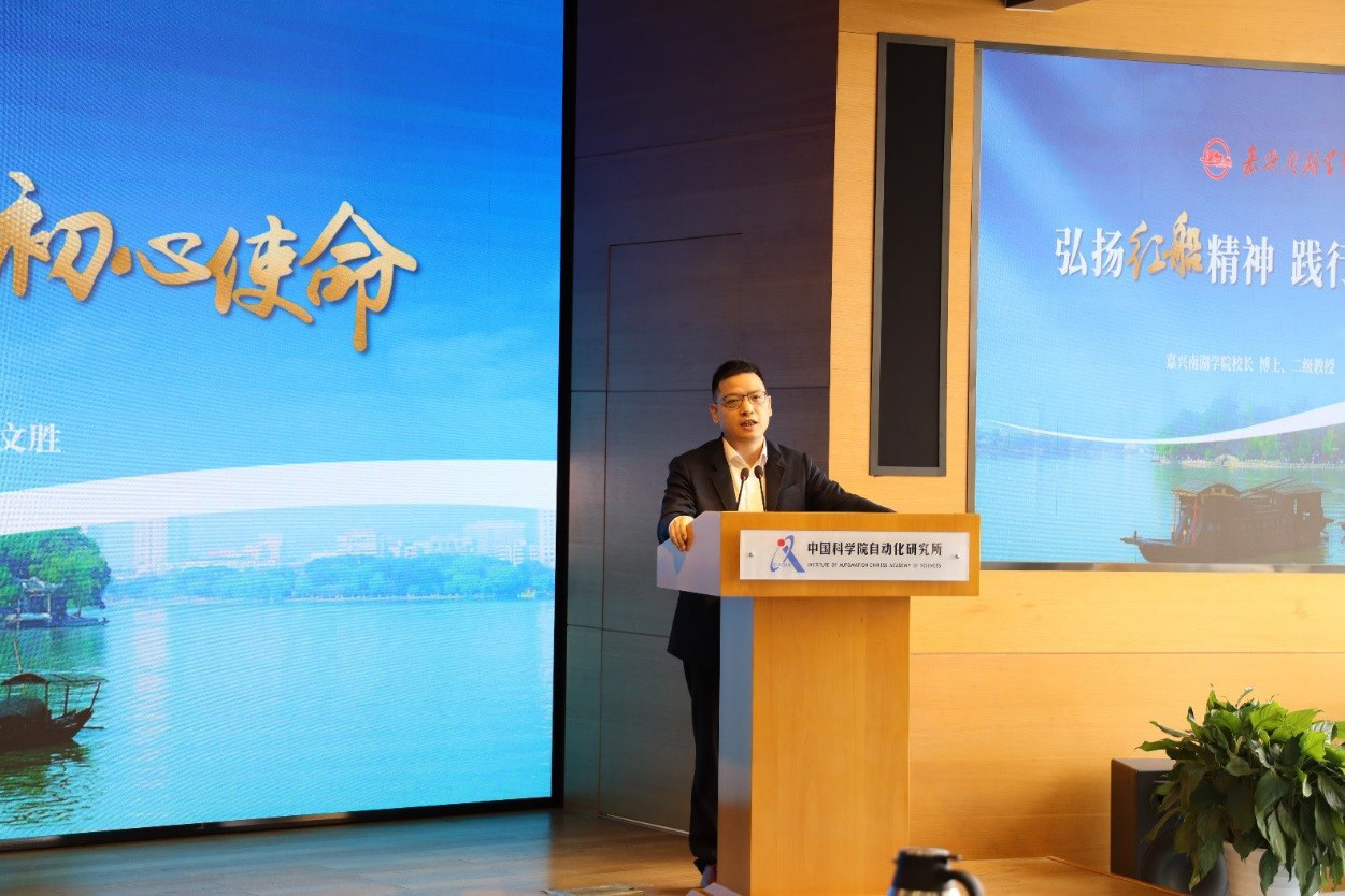 5月11日上午,校长贾文胜受邀为中国科学院自动化研究所党委作题为“弘扬红船精神,践行初心使命”专题辅导报告,报告会由自动化研究所党委书记牟克雄主持。