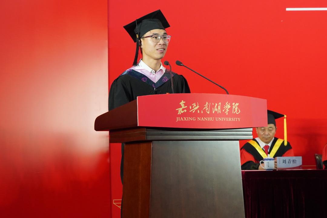 机建系党总支书记刘青松教授作为教师代表发言,向全体毕业生送上祝福。毕业生代表金融N174班赖忠兴同学在发言中表达了对母校和恩师的感激之情。