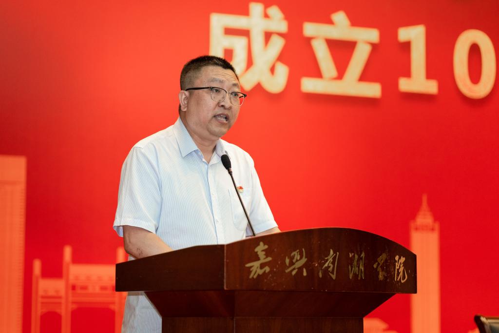 嘉兴市政协副主席、校党委书记盛付祥代表学校党委,向广大共产党员致以节日亲切的问候,对受到表彰的先进集体和优秀个人表示祝贺。盛付祥表示,先进集体和优秀个人的典型事迹、奋斗精神,都集中展现了基层党组织和广大党员围绕中心、服务大局、履职尽责、甘于奉献的精神风貌。他希望大家积极对标先进,履职尽责争优秀、立足岗位创一流,也希望受表彰的集体和个人,珍惜荣誉、再接再厉、再创佳绩。