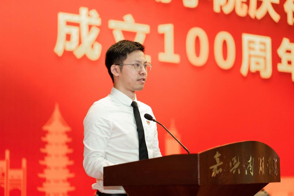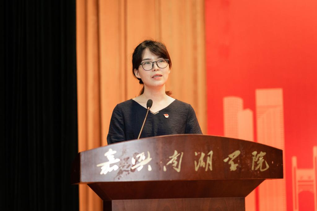 嘉兴市优秀共产党员刘勇、校优秀共产党员王辰昱、校优秀党务工作者武瑛、嘉兴市先进基层党组织人文系教工党支部李柽杨、学生党员代表陈逸轩作交流发言。