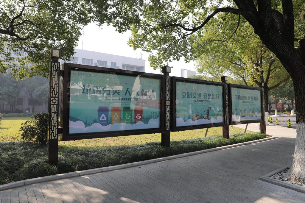 文明举止、消防安全、防范诈骗、远离毒品、反对邪教……在校园的角角落落,都张贴了醒目的宣传横幅,安装了内容丰富的宣传栏,时刻提醒师生们关注自己的言行举止、身心健康和财产安全。